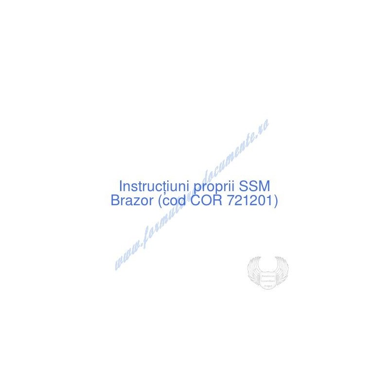 Aceste documente OBLIGATORII pentru ocupantul postului de Brazor (cod COR 721201), sunt complet întocmite, respectând cerințele Codului muncii actualizat 2023, Legii securității și sănătății în muncă nr. 319/2006 (actualizată 2023), H.G. 1425/2006 (actualizată 2023) și răspund tuturor cerințelor standardelor de calitate referitoare la management (ISO 9001/ ISO 14001/ ISO 22000/ SR OHSAS 18001:2008/ ISO 45001:2018 etc.). Cuprinsul IPSSM pentru instruirea angajatului pe funcția de Brazor :