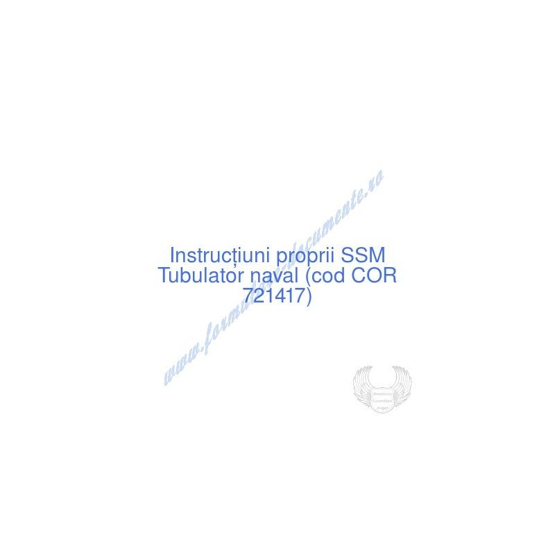 Aceste documente OBLIGATORII pentru ocupantul postului de Tubulator naval (cod COR 721417), sunt complet întocmite, respectând cerințele Codului muncii actualizat 2023, Legii securității și sănătății în muncă nr. 319/2006 (actualizată 2023), H.G. 1425/2006 (actualizată 2023) și răspund tuturor cerințelor standardelor de calitate referitoare la management (ISO 9001/ ISO 14001/ ISO 22000/ SR OHSAS 18001:2008/ ISO 45001:2018 etc.). Cuprinsul IPSSM pentru instruirea angajatului pe funcția de Tubulator naval :