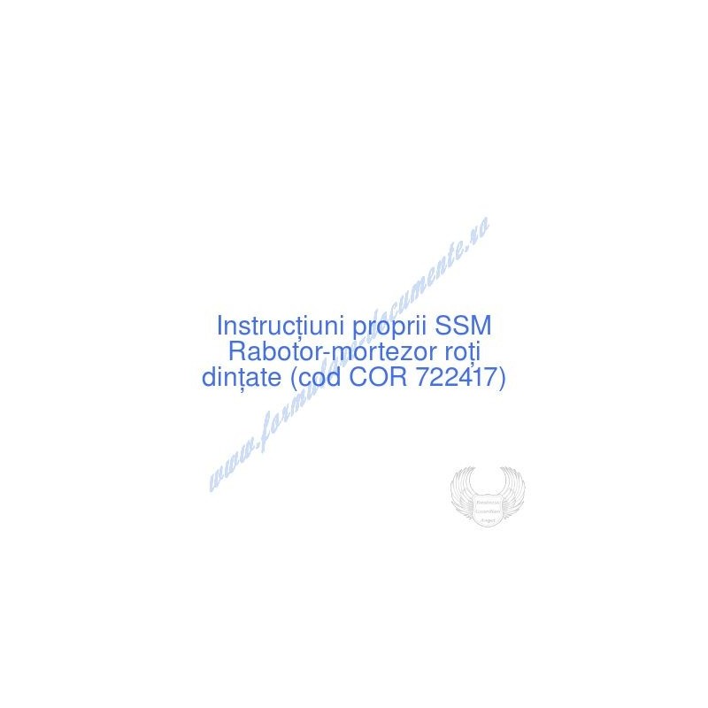 Aceste documente OBLIGATORII pentru ocupantul postului de Rabotor-mortezor roţi dinţate (cod COR 722417), sunt complet întocmite, respectând cerințele Codului muncii actualizat 2023, Legii securității și sănătății în muncă nr. 319/2006 (actualizată 2023), H.G. 1425/2006 (actualizată 2023) și răspund tuturor cerințelor standardelor de calitate referitoare la management (ISO 9001/ ISO 14001/ ISO 22000/ SR OHSAS 18001:2008/ ISO 45001:2018 etc.). Cuprinsul IPSSM pentru instruirea angajatului pe funcția de Rabotor-mortezor roţi dinţate :