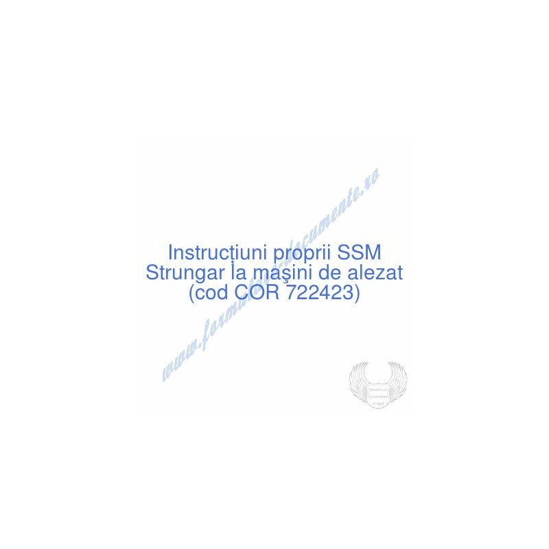 Aceste documente OBLIGATORII pentru ocupantul postului de Strungar la maşini de alezat (cod COR 722423), sunt complet întocmite, respectând cerințele Codului muncii actualizat 2023, Legii securității și sănătății în muncă nr. 319/2006 (actualizată 2023), H.G. 1425/2006 (actualizată 2023) și răspund tuturor cerințelor standardelor de calitate referitoare la management (ISO 9001/ ISO 14001/ ISO 22000/ SR OHSAS 18001:2008/ ISO 45001:2018 etc.). Cuprinsul IPSSM pentru instruirea angajatului pe funcția de Strungar la maşini de alezat :