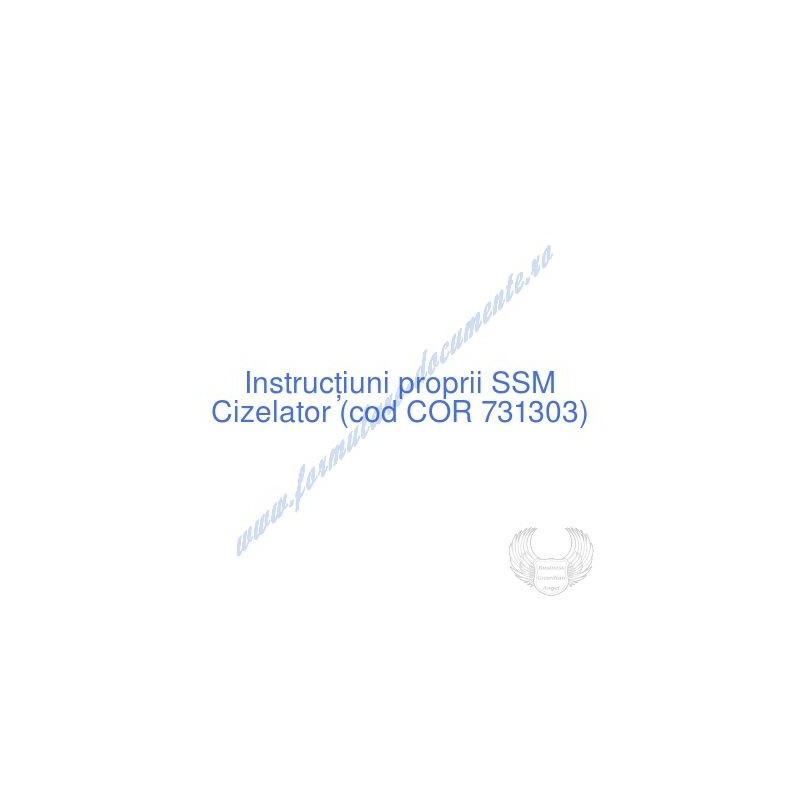 Aceste documente OBLIGATORII pentru ocupantul postului de Cizelator (cod COR 731303), sunt complet întocmite, respectând cerințele Codului muncii actualizat 2023, Legii securității și sănătății în muncă nr. 319/2006 (actualizată 2023), H.G. 1425/2006 (actualizată 2023) și răspund tuturor cerințelor standardelor de calitate referitoare la management (ISO 9001/ ISO 14001/ ISO 22000/ SR OHSAS 18001:2008/ ISO 45001:2018 etc.). Cuprinsul IPSSM pentru instruirea angajatului pe funcția de Cizelator :