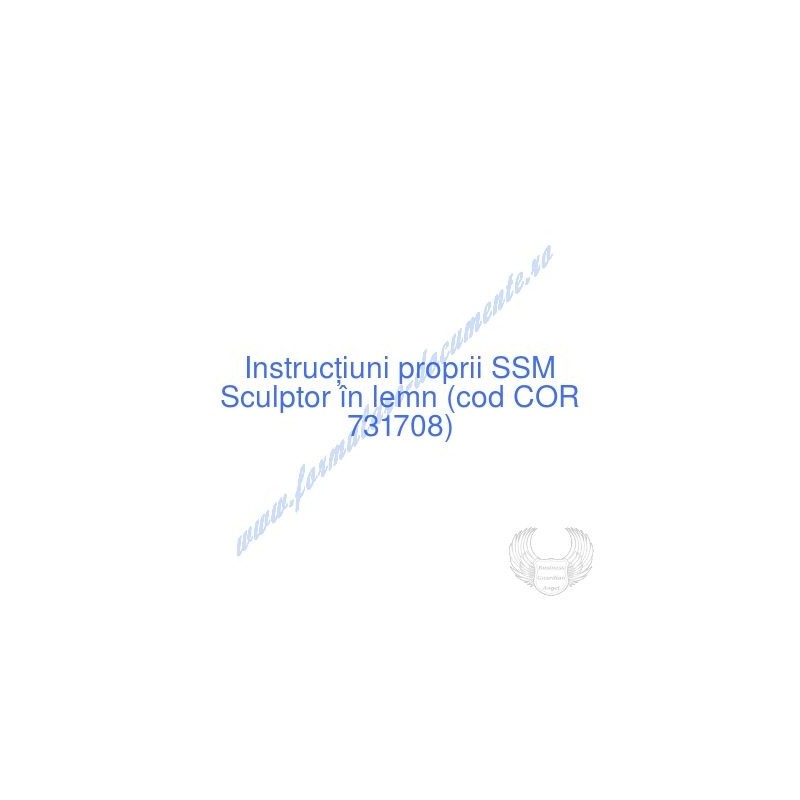 Aceste documente OBLIGATORII pentru ocupantul postului de Sculptor în lemn (cod COR 731708), sunt complet întocmite, respectând cerințele Codului muncii actualizat 2023, Legii securității și sănătății în muncă nr. 319/2006 (actualizată 2023), H.G. 1425/2006 (actualizată 2023) și răspund tuturor cerințelor standardelor de calitate referitoare la management (ISO 9001/ ISO 14001/ ISO 22000/ SR OHSAS 18001:2008/ ISO 45001:2018 etc.). Cuprinsul IPSSM pentru instruirea angajatului pe funcția de Sculptor în lemn :