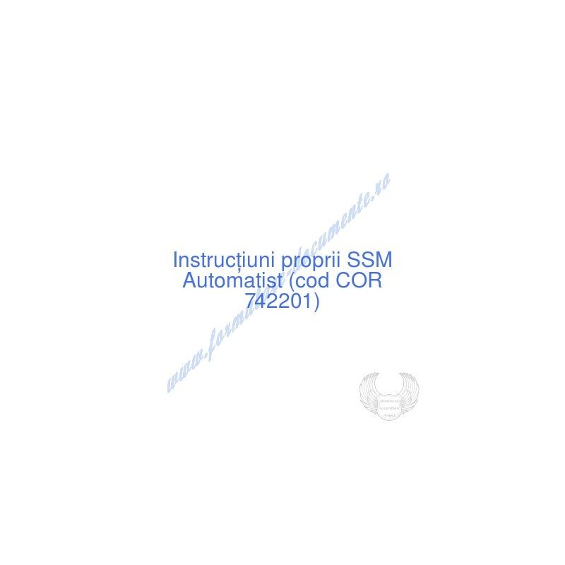 Aceste documente OBLIGATORII pentru ocupantul postului de Automatist (cod COR 742201), sunt complet întocmite, respectând cerințele Codului muncii actualizat 2023, Legii securității și sănătății în muncă nr. 319/2006 (actualizată 2023), H.G. 1425/2006 (actualizată 2023) și răspund tuturor cerințelor standardelor de calitate referitoare la management (ISO 9001/ ISO 14001/ ISO 22000/ SR OHSAS 18001:2008/ ISO 45001:2018 etc.). Cuprinsul IPSSM pentru instruirea angajatului pe funcția de Automatist :