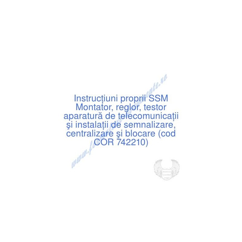 Aceste documente OBLIGATORII pentru ocupantul postului de Montator, reglor, testor aparatură de telecomunicaţii şi instalaţii de semnalizare, centralizare şi blocare (cod COR 742210), sunt complet întocmite, respectând cerințele Codului muncii actualizat 2023, Legii securității și sănătății în muncă nr. 319/2006 (actualizată 2023), H.G. 1425/2006 (actualizată 2023) și răspund tuturor cerințelor standardelor de calitate referitoare la management (ISO 9001/ ISO 14001/ ISO 22000/ SR OHSAS 18001:2008/ ISO 45001:2018 etc.). Cuprinsul IPSSM pentru instruirea angajatului pe funcția de Montator, reglor, testor aparatură de telecomunicaţii şi instalaţii de semnalizare, centralizare şi blocare :
