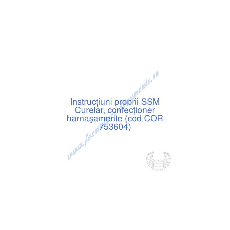 Aceste documente OBLIGATORII pentru ocupantul postului de Curelar, confecţioner harnaşamente (cod COR 753604), sunt complet întocmite, respectând cerințele Codului muncii actualizat 2023, Legii securității și sănătății în muncă nr. 319/2006 (actualizată 2023), H.G. 1425/2006 (actualizată 2023) și răspund tuturor cerințelor standardelor de calitate referitoare la management (ISO 9001/ ISO 14001/ ISO 22000/ SR OHSAS 18001:2008/ ISO 45001:2018 etc.). Cuprinsul IPSSM pentru instruirea angajatului pe funcția de Curelar, confecţioner harnaşamente :