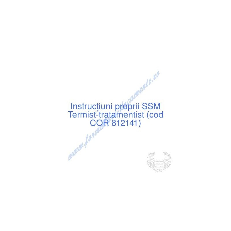 Aceste documente OBLIGATORII pentru ocupantul postului de Termist-tratamentist (cod COR 812141), sunt complet întocmite, respectând cerințele Codului muncii actualizat 2023, Legii securității și sănătății în muncă nr. 319/2006 (actualizată 2023), H.G. 1425/2006 (actualizată 2023) și răspund tuturor cerințelor standardelor de calitate referitoare la management (ISO 9001/ ISO 14001/ ISO 22000/ SR OHSAS 18001:2008/ ISO 45001:2018 etc.). Cuprinsul IPSSM pentru instruirea angajatului pe funcția de Termist-tratamentist :