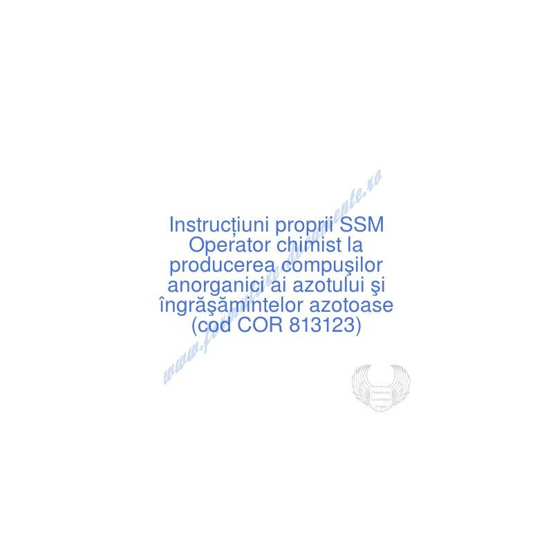 Aceste documente OBLIGATORII pentru ocupantul postului de Operator chimist la producerea compuşilor anorganici ai azotului şi îngrăşămintelor azotoase (cod COR 813123), sunt complet întocmite, respectând cerințele Codului muncii actualizat 2023, Legii securității și sănătății în muncă nr. 319/2006 (actualizată 2023), H.G. 1425/2006 (actualizată 2023) și răspund tuturor cerințelor standardelor de calitate referitoare la management (ISO 9001/ ISO 14001/ ISO 22000/ SR OHSAS 18001:2008/ ISO 45001:2018 etc.). Cuprinsul IPSSM pentru instruirea angajatului pe funcția de Operator chimist la producerea compuşilor anorganici ai azotului şi îngrăşămintelor azotoase :