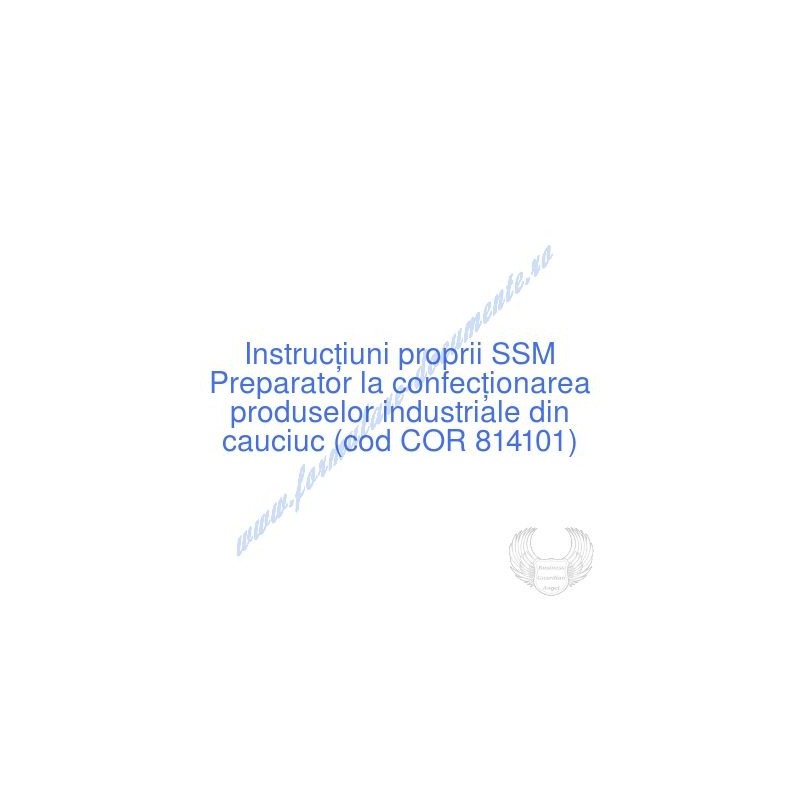 Aceste documente OBLIGATORII pentru ocupantul postului de Preparator la confecţionarea produselor industriale din cauciuc (cod COR 814101), sunt complet întocmite, respectând cerințele Codului muncii actualizat 2023, Legii securității și sănătății în muncă nr. 319/2006 (actualizată 2023), H.G. 1425/2006 (actualizată 2023) și răspund tuturor cerințelor standardelor de calitate referitoare la management (ISO 9001/ ISO 14001/ ISO 22000/ SR OHSAS 18001:2008/ ISO 45001:2018 etc.). Cuprinsul IPSSM pentru instruirea angajatului pe funcția de Preparator la confecţionarea produselor industriale din cauciuc :