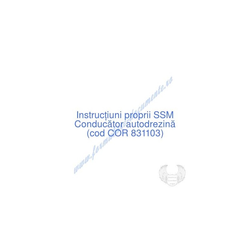 Aceste documente OBLIGATORII pentru ocupantul postului de Conducător autodrezină (cod COR 831103), sunt complet întocmite, respectând cerințele Codului muncii actualizat 2023, Legii securității și sănătății în muncă nr. 319/2006 (actualizată 2023), H.G. 1425/2006 (actualizată 2023) și răspund tuturor cerințelor standardelor de calitate referitoare la management (ISO 9001/ ISO 14001/ ISO 22000/ SR OHSAS 18001:2008/ ISO 45001:2018 etc.). Cuprinsul IPSSM pentru instruirea angajatului pe funcția de Conducător autodrezină :