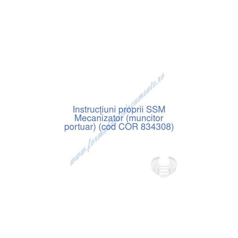 Aceste documente OBLIGATORII pentru ocupantul postului de Mecanizator (muncitor portuar) (cod COR 834308), sunt complet întocmite, respectând cerințele Codului muncii actualizat 2023, Legii securității și sănătății în muncă nr. 319/2006 (actualizată 2023), H.G. 1425/2006 (actualizată 2023) și răspund tuturor cerințelor standardelor de calitate referitoare la management (ISO 9001/ ISO 14001/ ISO 22000/ SR OHSAS 18001:2008/ ISO 45001:2018 etc.). Cuprinsul IPSSM pentru instruirea angajatului pe funcția de Mecanizator (muncitor portuar) :