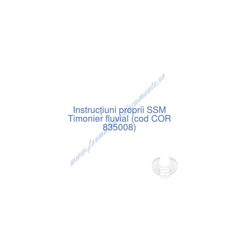 Aceste documente OBLIGATORII pentru ocupantul postului de Timonier fluvial (cod COR 835008), sunt complet întocmite, respectând cerințele Codului muncii actualizat 2023, Legii securității și sănătății în muncă nr. 319/2006 (actualizată 2023), H.G. 1425/2006 (actualizată 2023) și răspund tuturor cerințelor standardelor de calitate referitoare la management (ISO 9001/ ISO 14001/ ISO 22000/ SR OHSAS 18001:2008/ ISO 45001:2018 etc.). Cuprinsul IPSSM pentru instruirea angajatului pe funcția de Timonier fluvial :