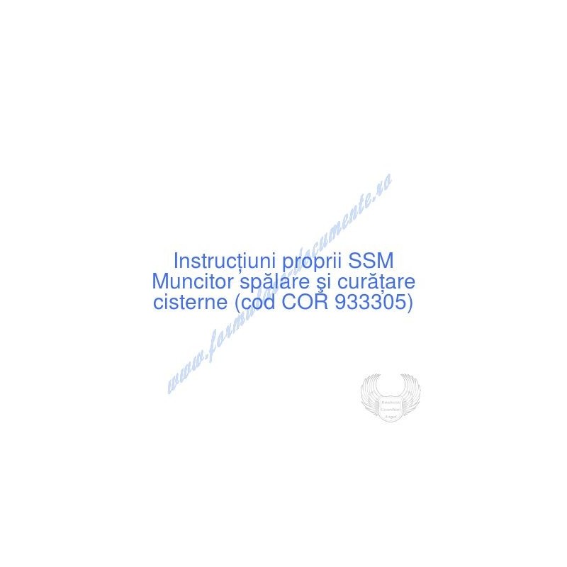 Aceste documente OBLIGATORII pentru ocupantul postului de Muncitor spălare şi curăţare cisterne (cod COR 933305), sunt complet întocmite, respectând cerințele Codului muncii actualizat 2023, Legii securității și sănătății în muncă nr. 319/2006 (actualizată 2023), H.G. 1425/2006 (actualizată 2023) și răspund tuturor cerințelor standardelor de calitate referitoare la management (ISO 9001/ ISO 14001/ ISO 22000/ SR OHSAS 18001:2008/ ISO 45001:2018 etc.). Cuprinsul IPSSM pentru instruirea angajatului pe funcția de Muncitor spălare şi curăţare cisterne :