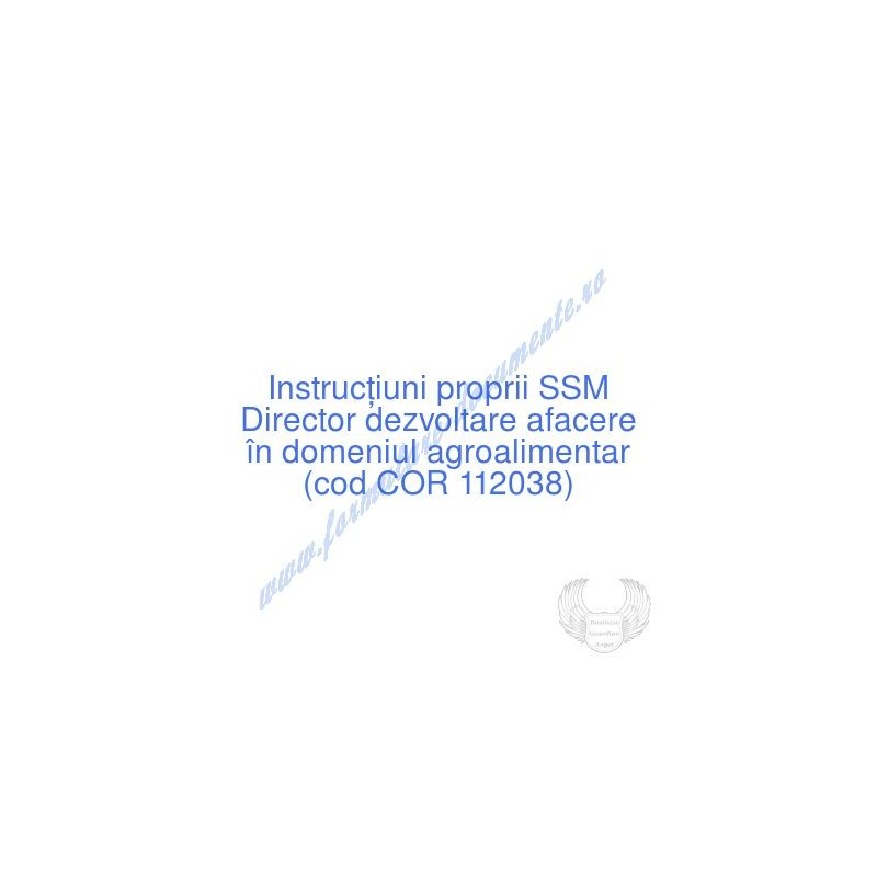 Aceste documente OBLIGATORII pentru ocupantul postului de Director dezvoltare afacere în domeniul agroalimentar (cod COR 112038), sunt complet întocmite, respectând cerințele Codului muncii actualizat 2023, Legii securității și sănătății în muncă nr. 319/2006 (actualizată 2023), H.G. 1425/2006 (actualizată 2023) și răspund tuturor cerințelor standardelor de calitate referitoare la management (ISO 9001/ ISO 14001/ ISO 22000/ SR OHSAS 18001:2008/ ISO 45001:2018 etc.). Cuprinsul IPSSM pentru instruirea angajatului pe funcția de Director dezvoltare afacere în domeniul agroalimentar :