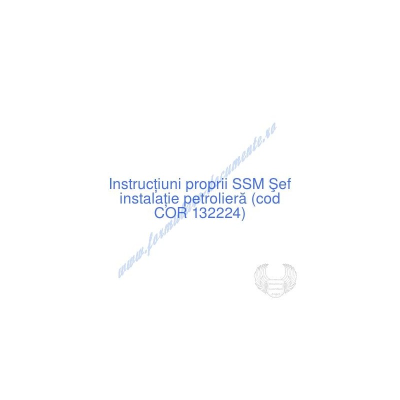 Aceste documente OBLIGATORII pentru ocupantul postului de Şef instalaţie petrolieră (cod COR 132224), sunt complet întocmite, respectând cerințele Codului muncii actualizat 2023, Legii securității și sănătății în muncă nr. 319/2006 (actualizată 2023), H.G. 1425/2006 (actualizată 2023) și răspund tuturor cerințelor standardelor de calitate referitoare la management (ISO 9001/ ISO 14001/ ISO 22000/ SR OHSAS 18001:2008/ ISO 45001:2018 etc.). Cuprinsul IPSSM pentru instruirea angajatului pe funcția de Şef instalaţie petrolieră :