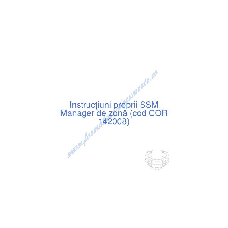Aceste documente OBLIGATORII pentru ocupantul postului de Manager de zonă (cod COR 142008), sunt complet întocmite, respectând cerințele Codului muncii actualizat 2023, Legii securității și sănătății în muncă nr. 319/2006 (actualizată 2023), H.G. 1425/2006 (actualizată 2023) și răspund tuturor cerințelor standardelor de calitate referitoare la management (ISO 9001/ ISO 14001/ ISO 22000/ SR OHSAS 18001:2008/ ISO 45001:2018 etc.). Cuprinsul IPSSM pentru instruirea angajatului pe funcția de Manager de zonă :