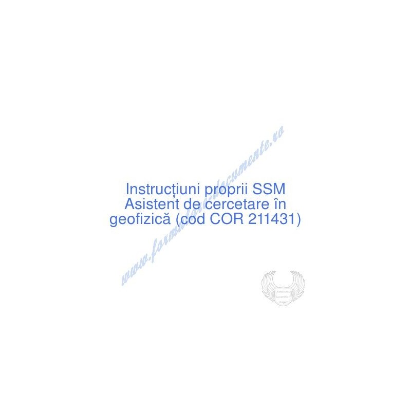 Aceste documente OBLIGATORII pentru ocupantul postului de Asistent de cercetare în geofizică (cod COR 211431), sunt complet întocmite, respectând cerințele Codului muncii actualizat 2023, Legii securității și sănătății în muncă nr. 319/2006 (actualizată 2023), H.G. 1425/2006 (actualizată 2023) și răspund tuturor cerințelor standardelor de calitate referitoare la management (ISO 9001/ ISO 14001/ ISO 22000/ SR OHSAS 18001:2008/ ISO 45001:2018 etc.). Cuprinsul IPSSM pentru instruirea angajatului pe funcția de Asistent de cercetare în geofizică :