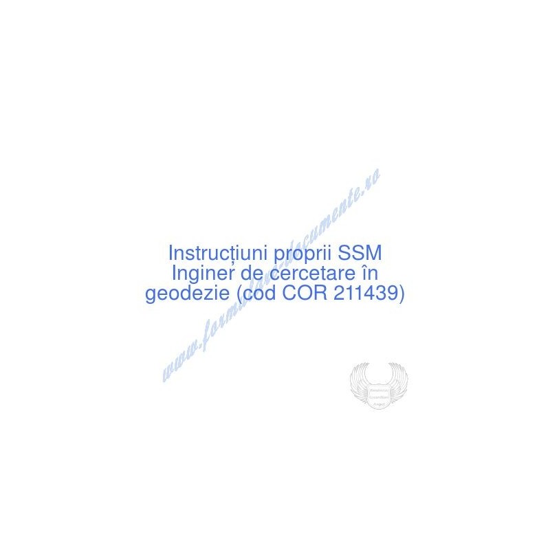 Aceste documente OBLIGATORII pentru ocupantul postului de Inginer de cercetare în geodezie (cod COR 211439), sunt complet întocmite, respectând cerințele Codului muncii actualizat 2023, Legii securității și sănătății în muncă nr. 319/2006 (actualizată 2023), H.G. 1425/2006 (actualizată 2023) și răspund tuturor cerințelor standardelor de calitate referitoare la management (ISO 9001/ ISO 14001/ ISO 22000/ SR OHSAS 18001:2008/ ISO 45001:2018 etc.). Cuprinsul IPSSM pentru instruirea angajatului pe funcția de Inginer de cercetare în geodezie :