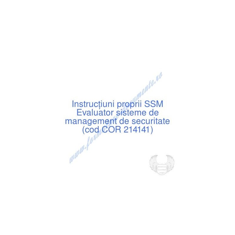 Aceste documente OBLIGATORII pentru ocupantul postului de Evaluator sisteme de management de securitate (cod COR 214141), sunt complet întocmite, respectând cerințele Codului muncii actualizat 2023, Legii securității și sănătății în muncă nr. 319/2006 (actualizată 2023), H.G. 1425/2006 (actualizată 2023) și răspund tuturor cerințelor standardelor de calitate referitoare la management (ISO 9001/ ISO 14001/ ISO 22000/ SR OHSAS 18001:2008/ ISO 45001:2018 etc.). Cuprinsul IPSSM pentru instruirea angajatului pe funcția de Evaluator sisteme de management de securitate :